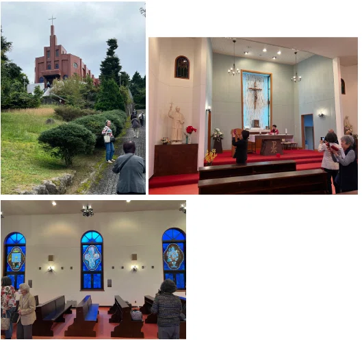 長崎空港から千々石展望台で昼食をとり、山道を登って標高約700mの雲仙教会へ。