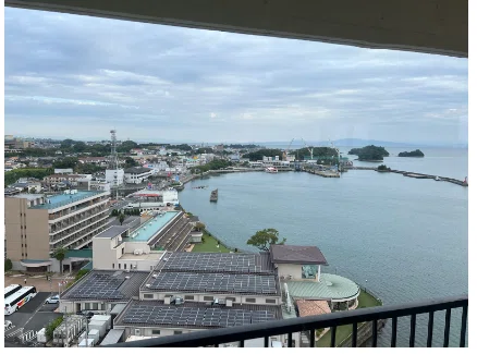 窓辺から望む夕景は、旅の疲れを癒すひとときとなりました。