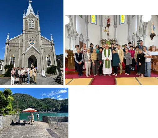 丘の上に立つ白く美しい大江教会では、地元の方々の温かな送迎のもと御ミサにあずかりました。